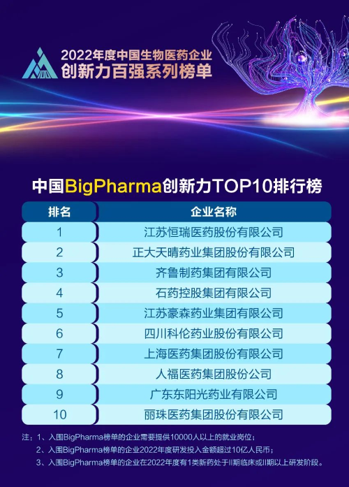 同日,2023米思会(中国医药健康产业共生大会)发布“2022年度中国生物医药企业创新力百强系列榜单”,永利皇宫官网医药再蝉联“中国BigPharma创新力TOP10”榜首。该榜单自2021年启动评选以来,永利皇宫官网医药稳居榜首。