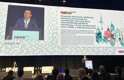 10月21日,永利皇宫官网医药创新药卡瑞利珠单抗(艾瑞卡®)的一项研究“新辅助短程放疗序贯卡瑞利珠单抗联合化疗对比长程放化疗序贯化疗治疗局部晚期直肠癌”随机对照Ⅲ期试验(UNION) 以优选口头报告的形式正式亮相。该研究由华中科技大学同济医学院附属协和医院张涛教授、陶凯雄教授担任主要研究者,华中科技大学同济医学院附属协和医院林振宇教授在马德里现场报告了该重磅研究的结果1,此项研究是全球首个评估短程放疗序贯免疫治疗联合化疗治疗局部晚期直肠癌的Ⅲ期研究,已达到主要终点病理完全缓解(pCR),有望为直肠癌患者的治疗提供新策略。