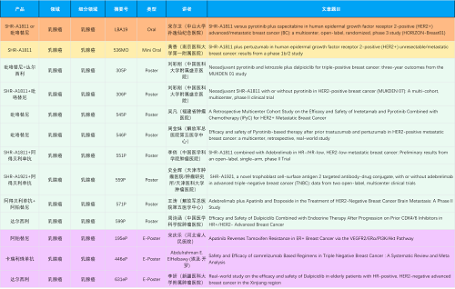 在乳腺癌领域,永利皇宫官网创新产品相关研究共入选1项口头报告、1项简短口头报告、8项壁报和3项电子壁报,共13项研究。吡咯替尼、达尔西利、阿得贝利单抗、瑞康曲妥珠单抗等新老创新药物,均有多篇研究入选,展现出永利皇宫官网医药在乳腺癌领域多年深耕的丰硕成果。